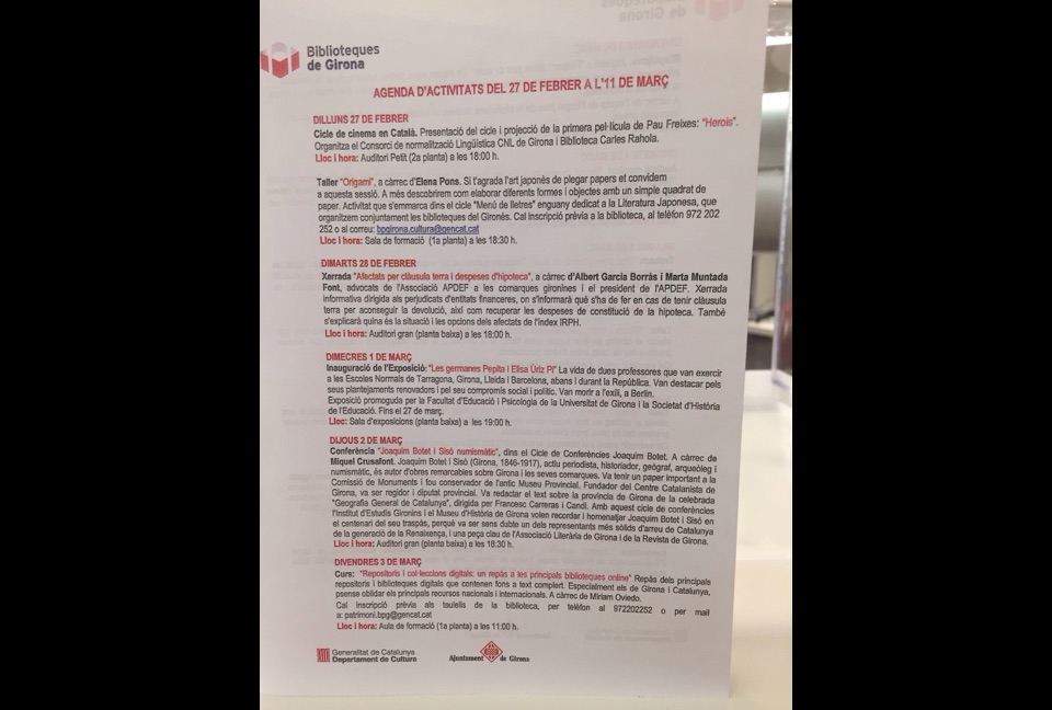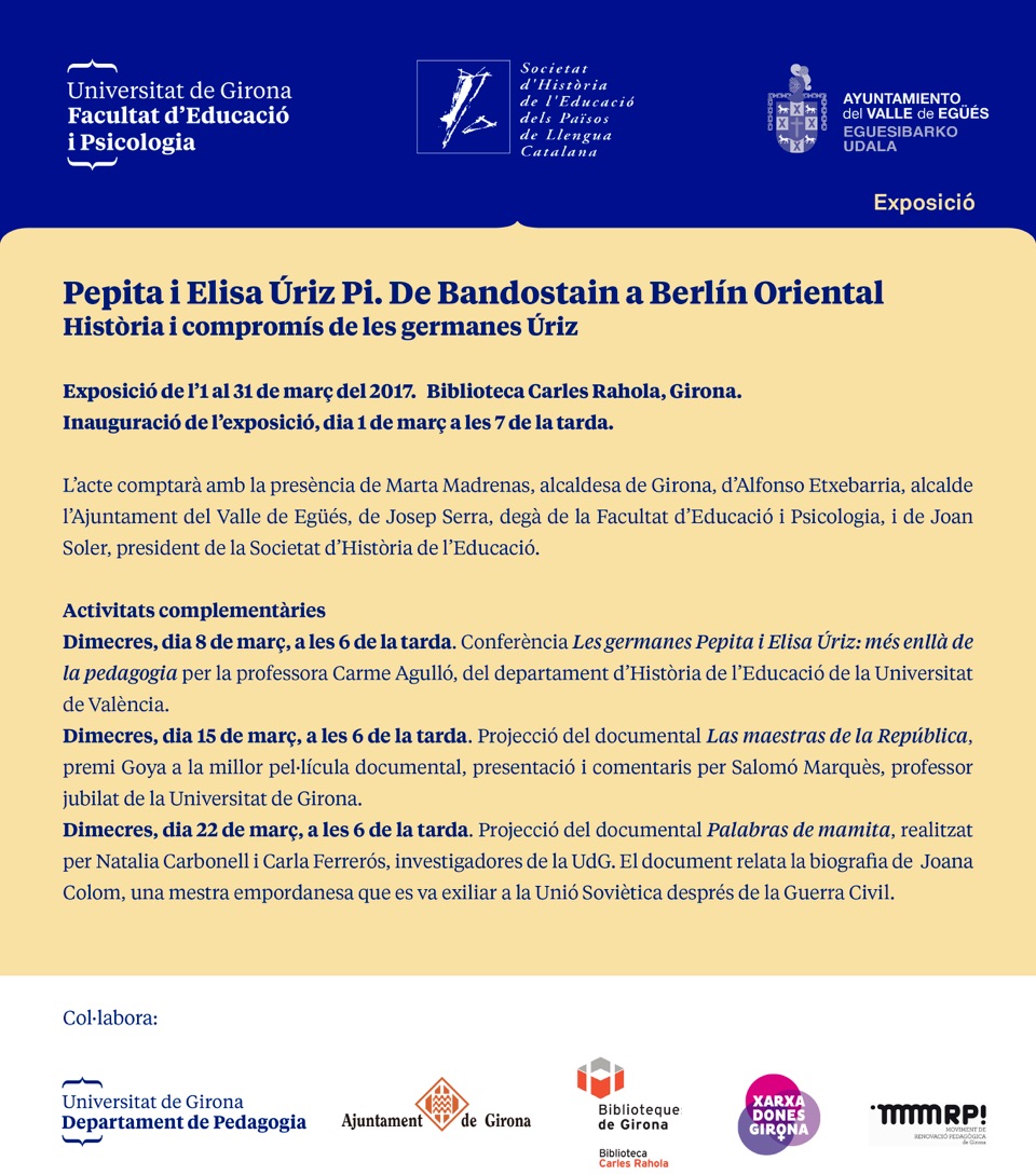 Inaugurado el 1 de marzo en un acto presidido por la alcaldesa de Girona, Marta Madrena y al que acudió el alcalde del Valle de Egüés Alfonso Etxeberría, el Concejal de cultura Joseba Orduña, el presidente de la “Societat de Historia de Educación”, Joan Soler, y el delegado de la facultad de Educación y Psicología de la educación de Girona, Josep Serra.