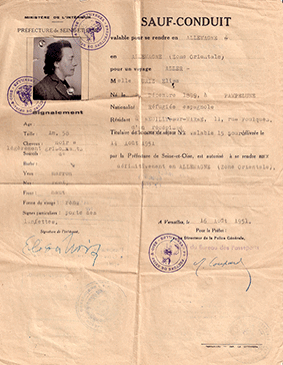 Pasaporte y salvoconducto utilizados, respectivamente, por Pepita y Elisa Úriz para poder cruzar el “Telón de Acero” camino de exilio definitivo.