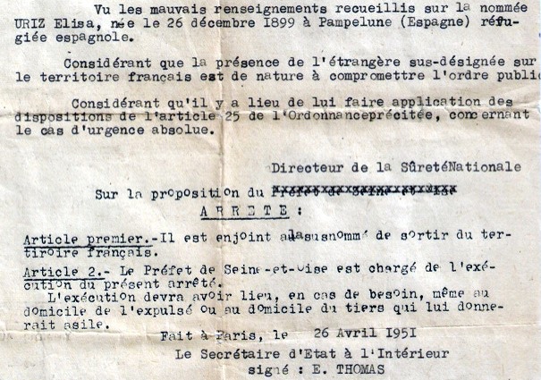En la lista con orden de ‘absoluta urgencia’ para su expulsión por motivos de ‘seguridad nacional’, había verdaderos héroes de la lucha contra la ocupación nazi de Francia, como el comandante Galeano, o las propias hermanas Úriz, responsables del ‘maquis español’ en la región de París junto a los también hermanos Josep y Conrad Miret, muertos a manos de los nazis.