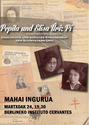 Erakusketa bat antolatu dugu eta erakusketa hori Berlinera eramango dugu. Erakusketaren izena “Pepita und Elisa Uriz Pi, vond Badostain nach Ostberlin. Geschichte und soziales engagement der schwestern Uriz” da.