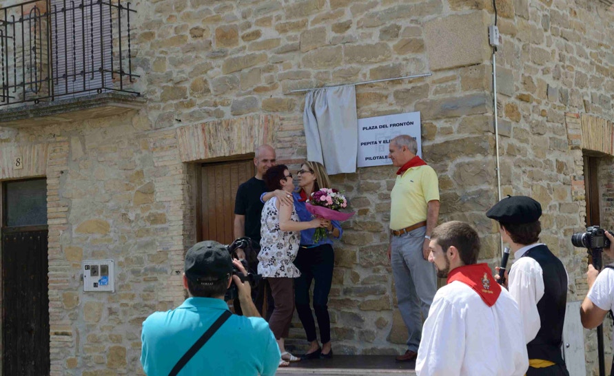 13 de junio de 2014. Tras la placa en el colegio el homenaje de Junio de 2014 fue a Badostáin donde se le cambió el nombre a la plaza principal del pueblo pasándose a llamar "Plaza del frontón Pepita y Elisa Úriz Pi".