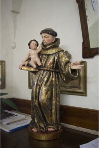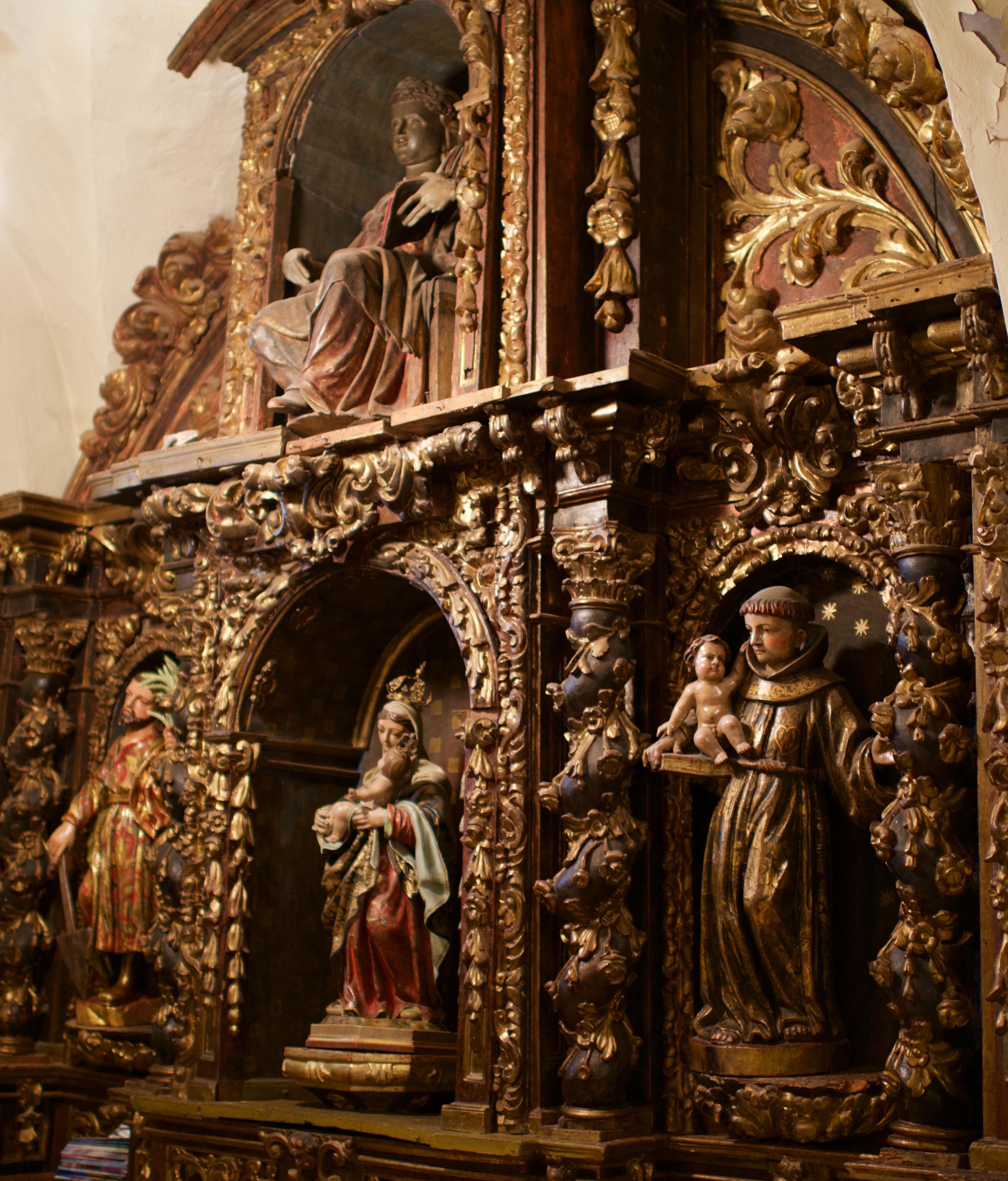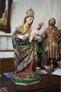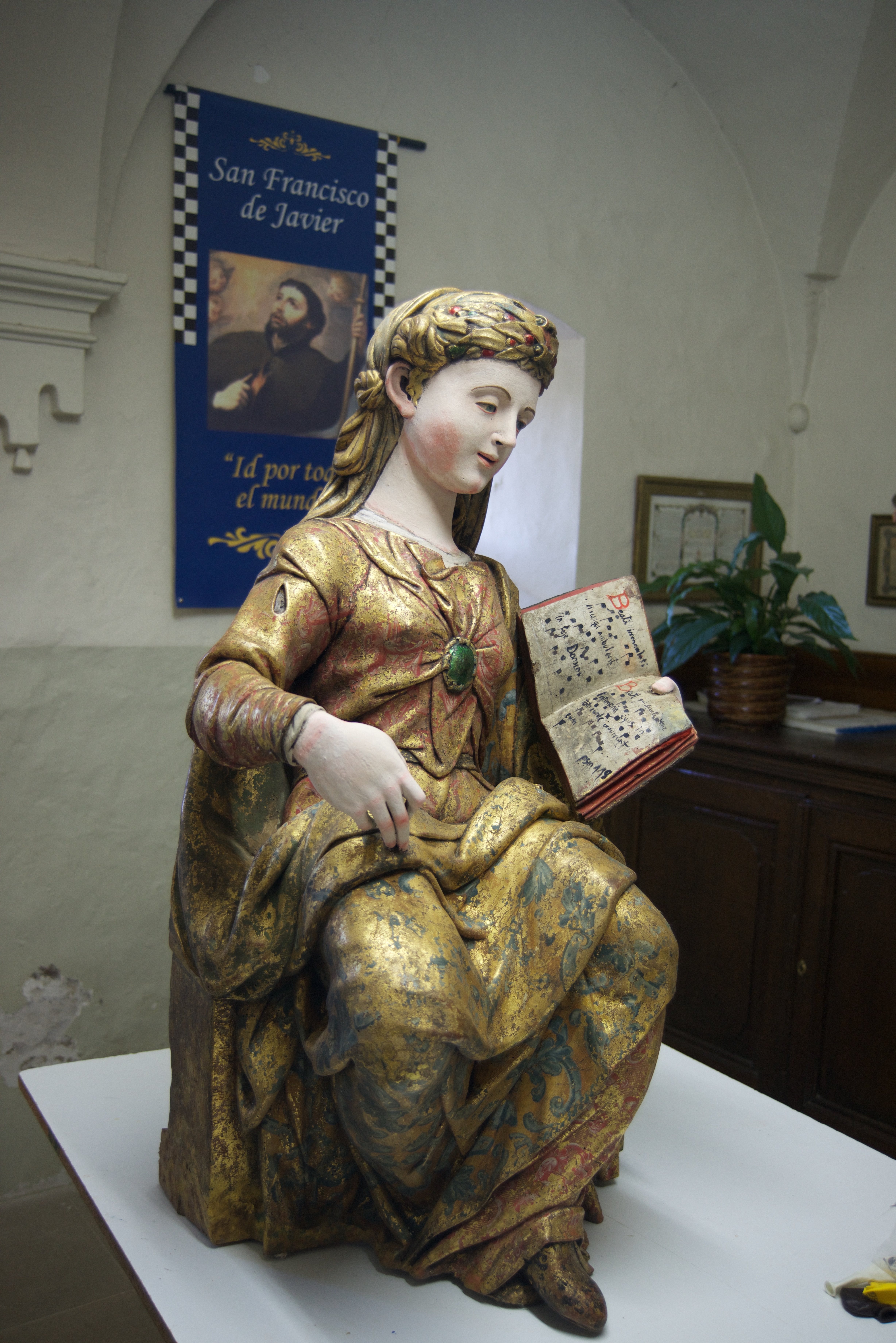 El retablo ha sido limpiado y pintado y la figura de Santa Eulalia, que estaba negra también. Está a falta de pintura. San Antonio y la virgen ya han sido pintados y muestran más brillo.