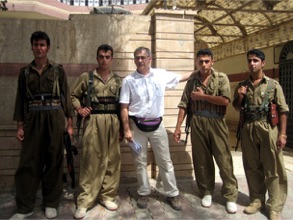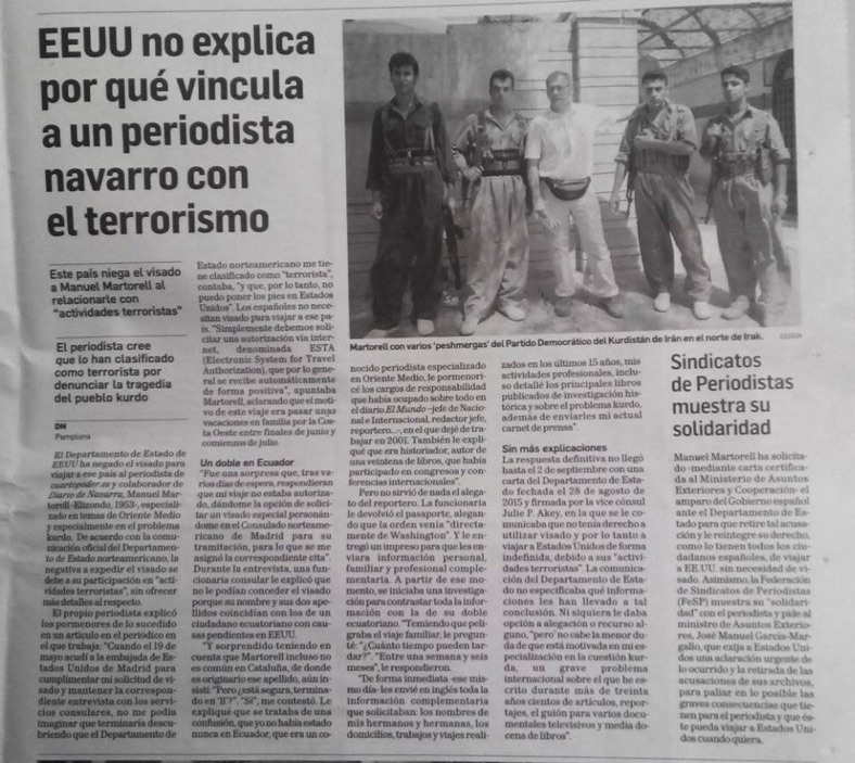El guionista e investigador de la exposición de hermanas Úriz es experto en temas de Carlismo, Comunismo y destacada figura internacional sobre los Kurdos. Denunciar las tropelías que se hacen con esa etnia es lo que le ha puesto en el disparadero de la CIA (que más parece la TIA de Mortadelo y Filemón) que ha calificado al bueno de Manuel nada más y nada menos que terrorista.